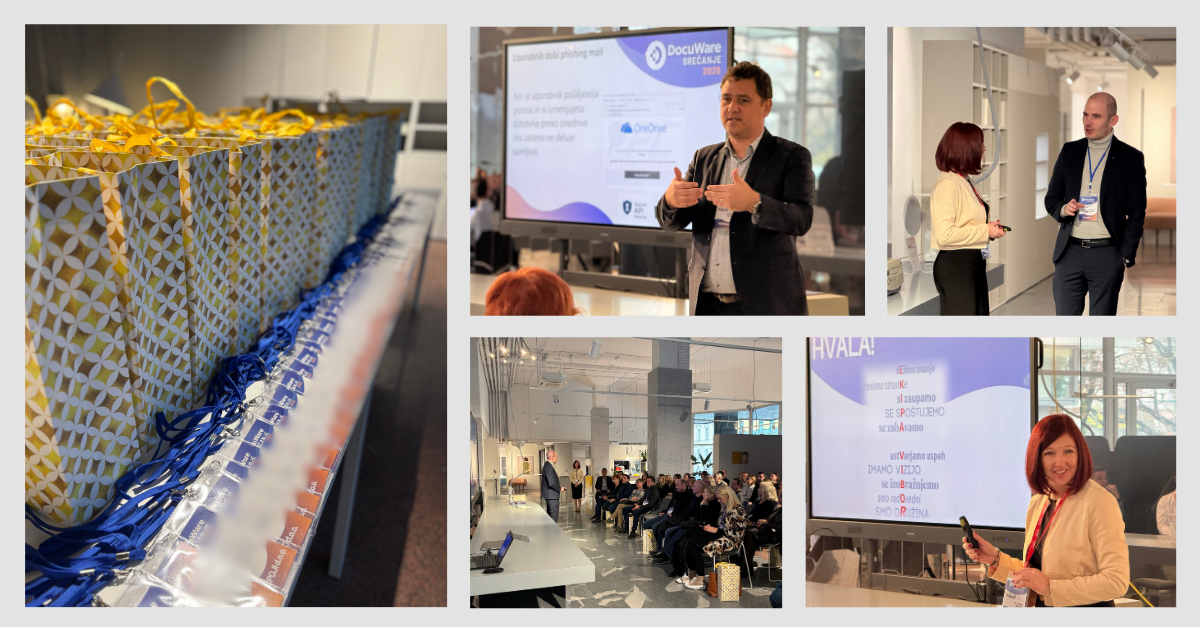 Poudarek je bil na praktičnih primerih uporabe dokumentega sistema DocuWare, naprednih funkcionalnostih ter konkretnih rešitvah za sodobne izzive digitalizacije. Osrednji del dogodka, ki je med udeleženci požel največ zanimanja in sprožil številne ideje za nadaljnjo optimizacijo procesov. Posebno izstopajoč trenutek je bila predstavitev sodelavca Roka Goričana, ki je s svojo energijo, znanjem in jasnimi rešitvami navdušil udeležence. Njegov nastop ter delo celotne ekipe sta utrdila prepričanje, da nudimo vrhunsko podporo in strokovnost.